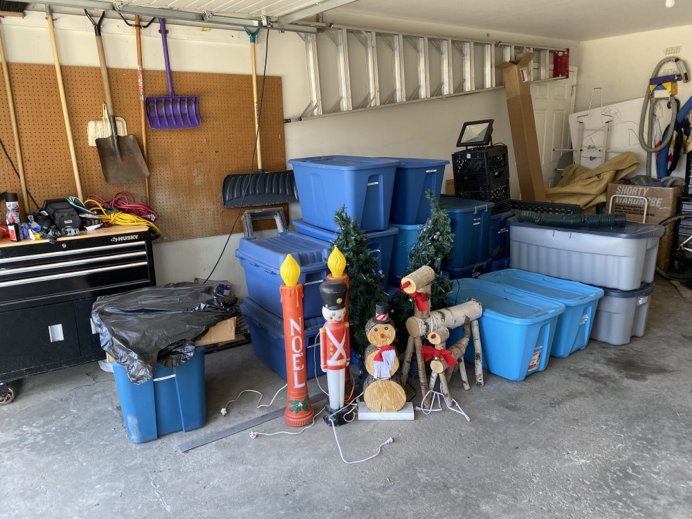 Tis the season to start to build up the light display. The first thing I do every years is clean out my garage, put away the car, bikes, and summer toys and get the lights into an accessible spot in the garage. Canadian Thanksgiving weekend (2nd Monday in October) is usually the weekend I try to get the garage cleaned out, the yard cleaned up and the trees pruned to help mount the lights.