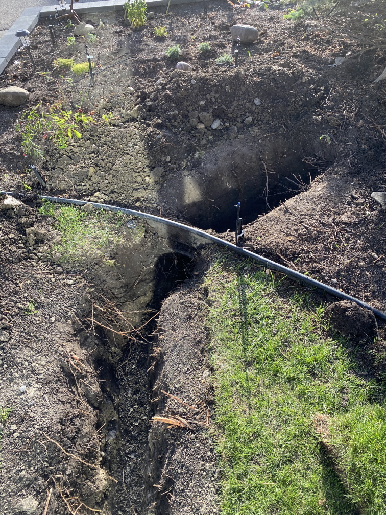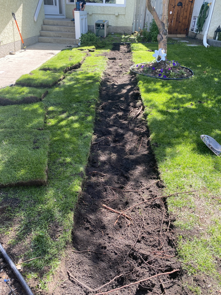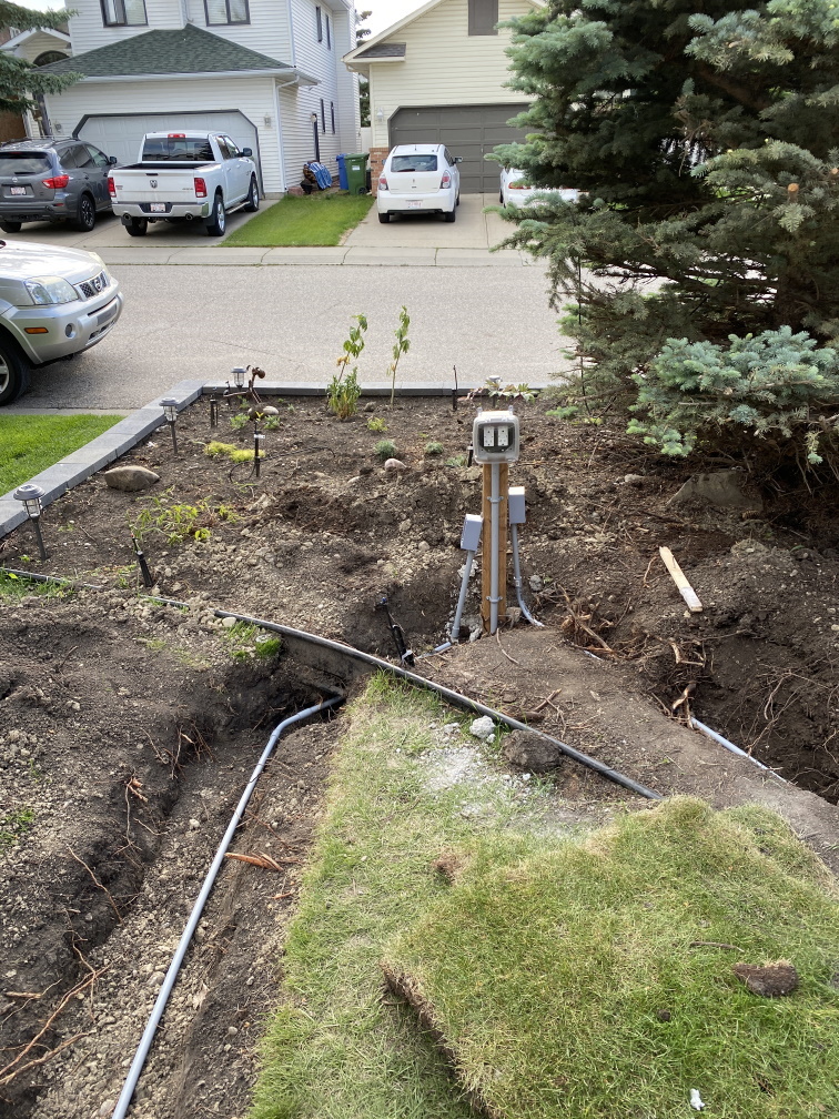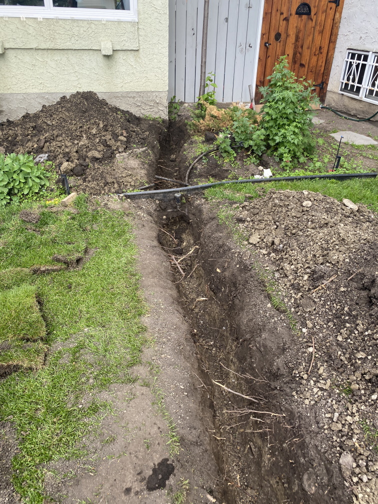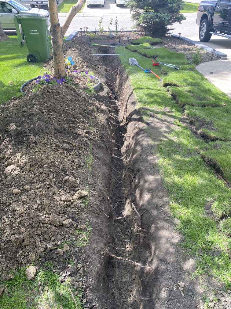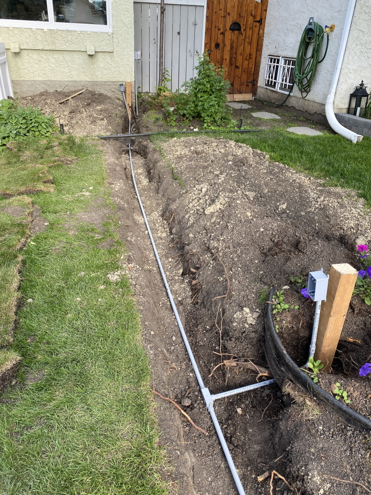 Now I had a plan, the first phase was for me to dig an 45 cm deep trench, this was about 18 meters from the house to the front flowerbed where I wanted the lines to terminate. After two days of digging I had the trench complete.