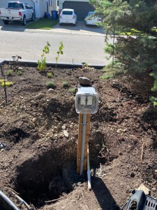 Now the electrician could do his thing. Once he was done, I just needed to cement in the post and fill the trench back in.