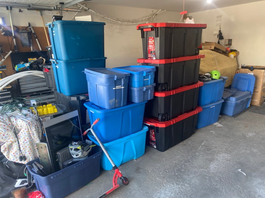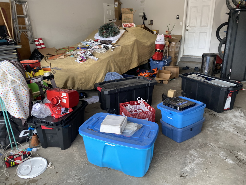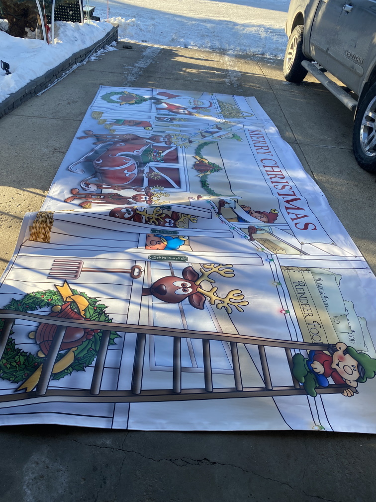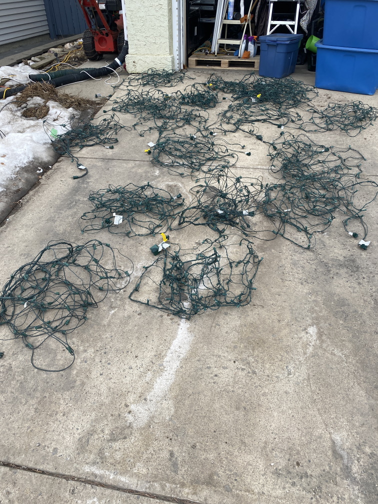 The last night of the show was Saturday January 2nd. The weather was nice and with the coronavirus restrictions in place we had no commitments so I could start the tear down immediately. The first pieces I attacked were all the ground decorations and the cover on the garage. Not all the ground decoration could be taken out as many of them were still frozen in with the snow or the cords were frozen to the ground (and I’ve learned the hard way about trying to force pull frozen cables). It was pretty depressing and quiet the first night without the lights 😦 .