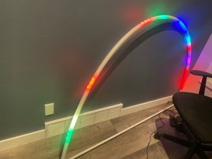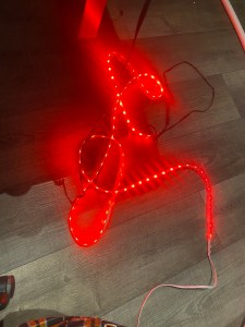 This is when my my first issue showed up, one of the new arches I built didn’t have a good connection where I had joined two sections of RGB strip lighting and one of the arches from last year wasn’t working at all. After a couple of attempts at adding new sections to the malfunctioning strip I finally just cut down a new strip. I repurposed the good part of the old strip to add some lights to my front step that will remain year round. The other one that wasn’t working, the wire had gotten scuffed during storage, a quick cut and solder back together had it working again.