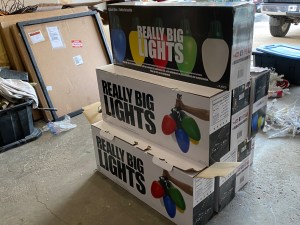 I also saw some giant (4 ft) Candy Canes at Home Depot so I had to add some of them. Another thing I had been looking for since I got my initial set was some Really Big Lights. I got my set from Spirit of Christmas for $10 when they were tearing down the store post Christmas, I had found some on eBay but they were $140 USD with another $140 shipping charges. I really wanted more but not $300 bad. Then a set showed up locally on Kijiji, I immediately grabbed them, by the time I got home another listing with four sets appeared. I arranged to buy these too. When I arrived to pick them up the seller had discovered seven sets which he sold to me for the price listed for four. Super deal but now I had way more than I needed, but there is no such thing as too many lights.