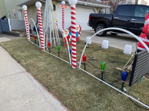On the last day before light up there were some ground decorations to install, the singing Santa, and the installation of the garage and fence banners and the Nutcracker. This was all pretty simple stuff. When I did get the show running the Singing Santa wasn’t working, after a little troubleshooting I had it assigned to the wrong network in the LOR preview. Here we were, all done with 3 hours to spare and one hockey practice before the lights turned on,